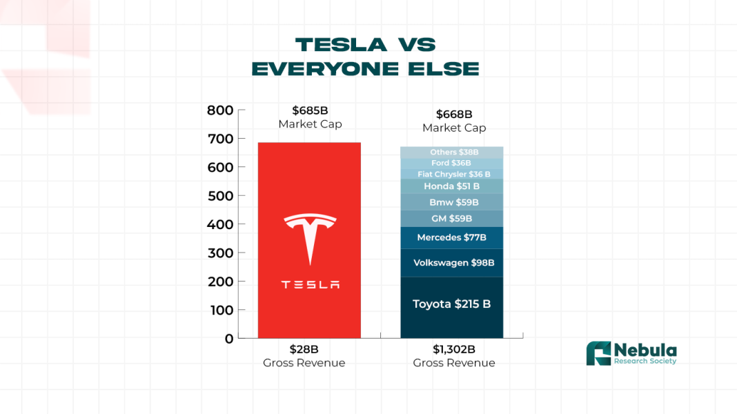 Through its bold innovating methods Tesla became a market leader by transforming the automotive world. The automotive world now operates differently because Elon Musk created a new electric vehicles reality despite industry experts doubting his plan. The growing market value of Tesla has outpaced other automakers like Ford and General Motors because investors support its unique market approach. After starting as a niche product the Tesla Model S rose up to create greater sales numbers than established luxury car companies in key markets. Tesla's market dominance results from its persistent effort to create advanced battery technology.